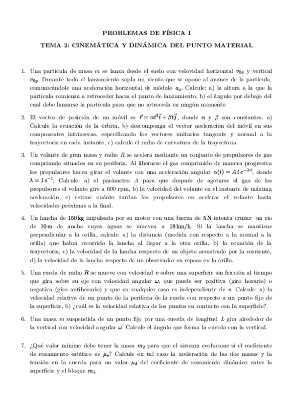 ENUNCIADOS PROBLEMAS FISICA I