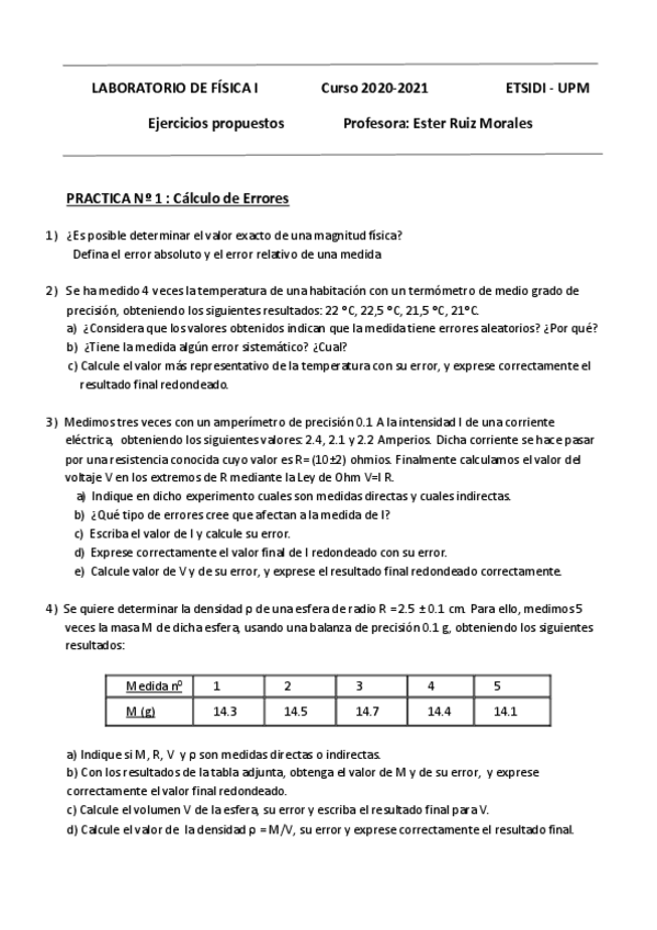 He publicado nuevos practicas de 1º Física I: Ejercicios