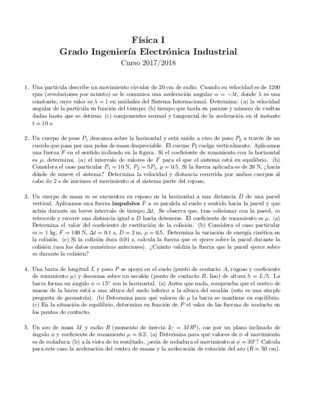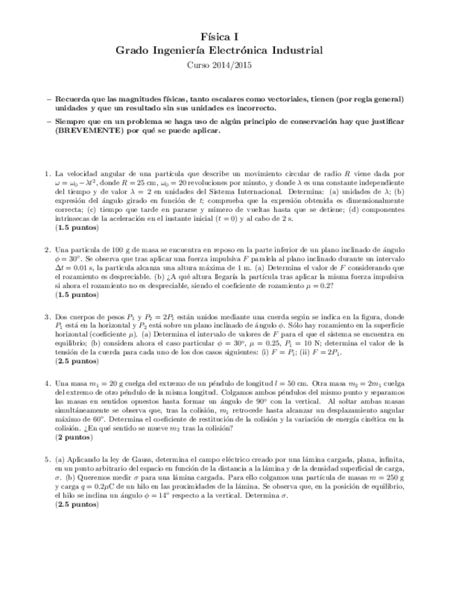 He publicado nuevos examenes de 1º Física I: FEBRERO 2017