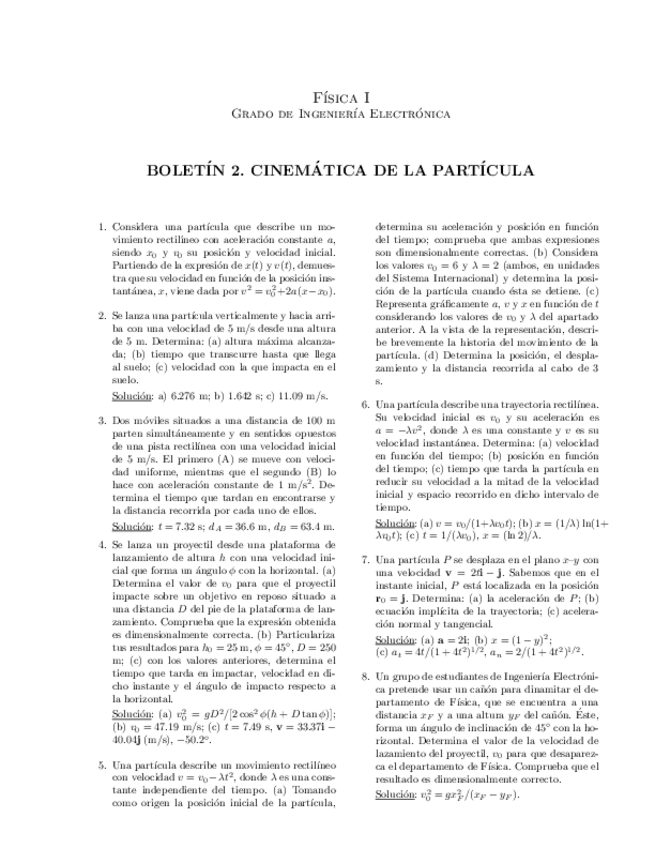 He publicado nuevos ejercicios de 1º Física I: BOLETÍN 2