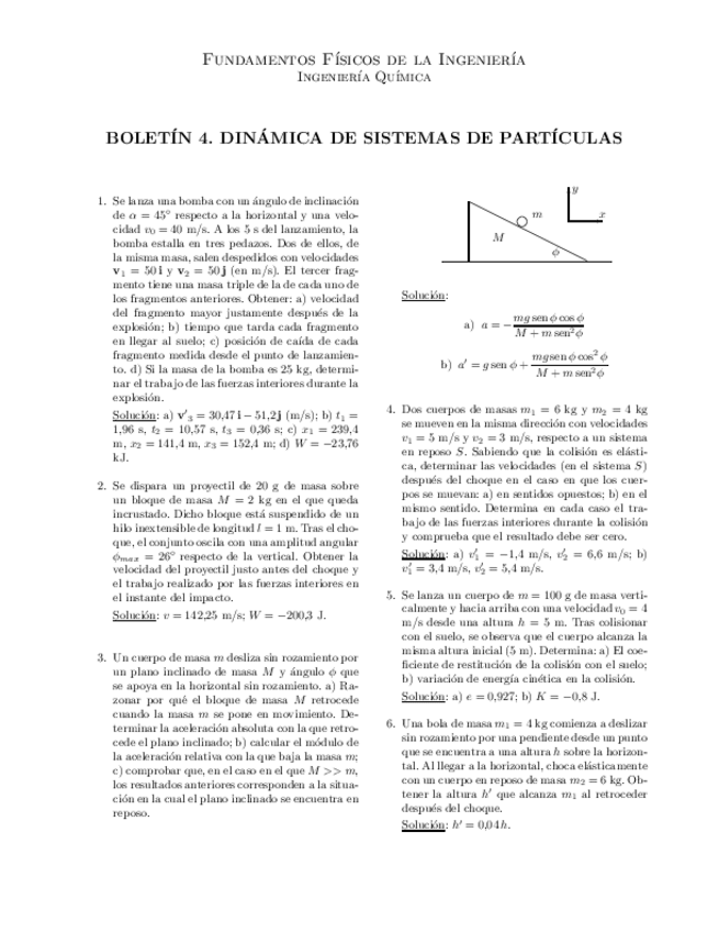 He publicado nuevos ejercicios de 1º Física I: BOLETÍN 4
