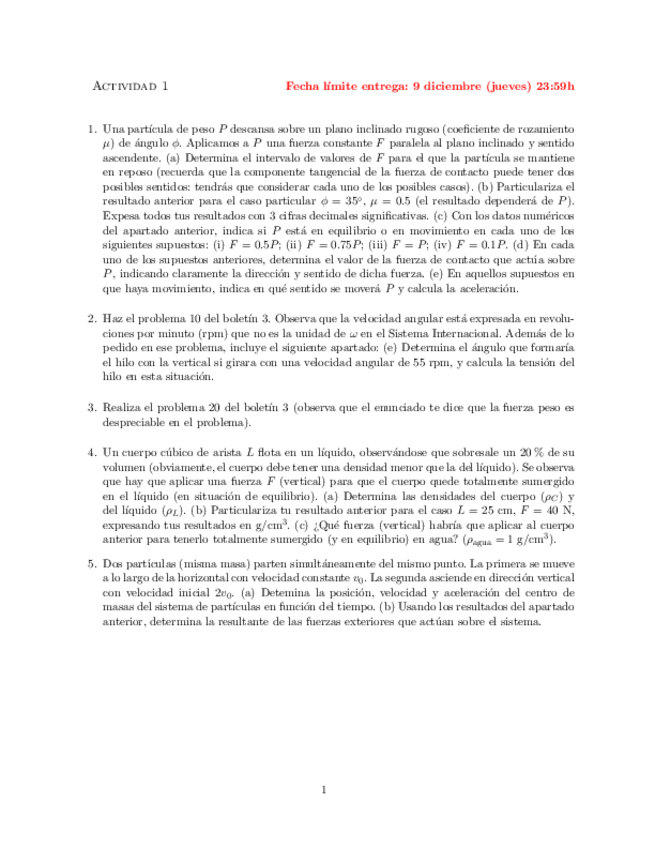 He publicado nuevos ejercicios de 1º Física I: TAREA 1