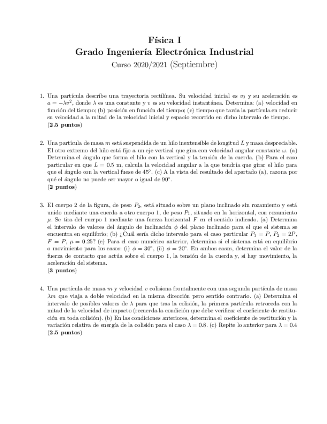 He publicado nuevos examenes de 1º Física I: SEPTIEMBRE 2021