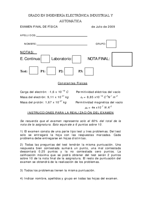 He publicado nuevos examenes de 1º Física I: Otros cursos