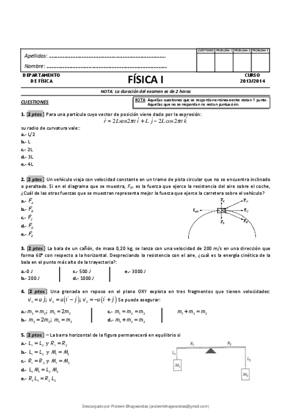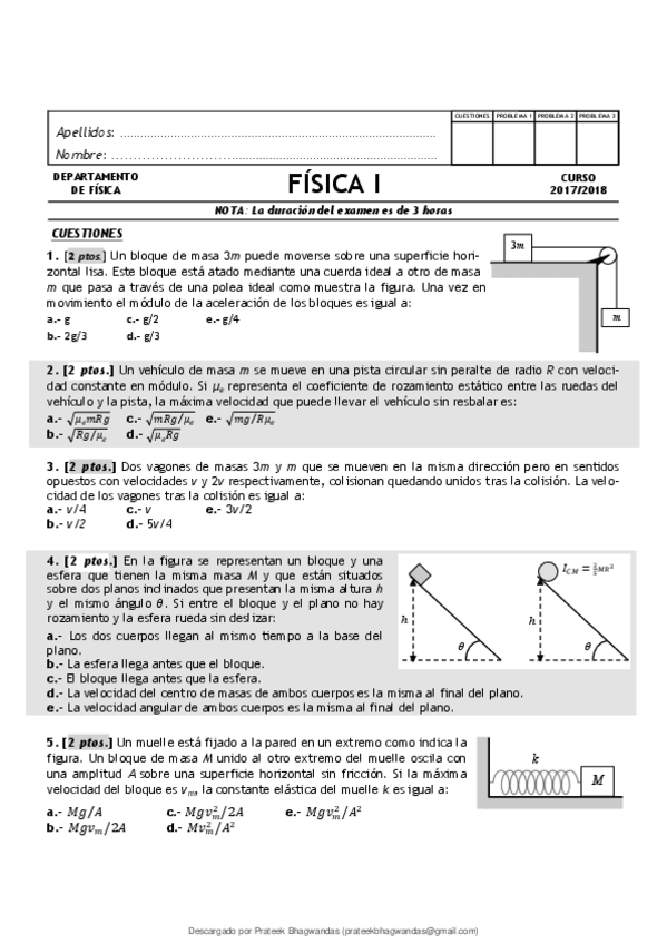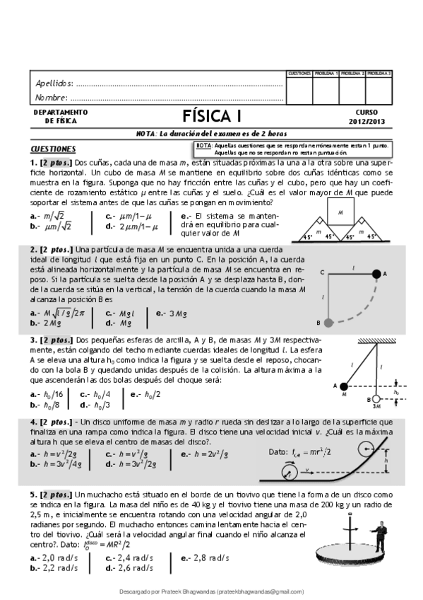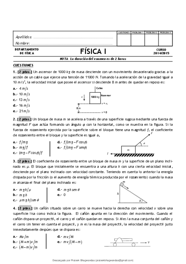 He publicado nuevos examenes de 1º Física I: examenes de fisca 1
