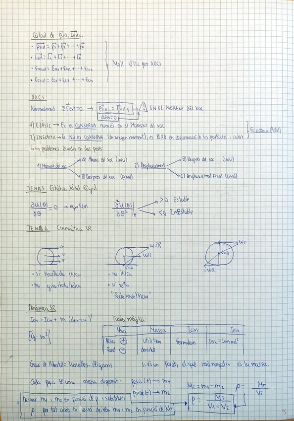 apunts molt resumits, clars i concisos del tema 5 sòlid rígid fisica 1, etseib. varis colors i estils per fer-los més visuals.