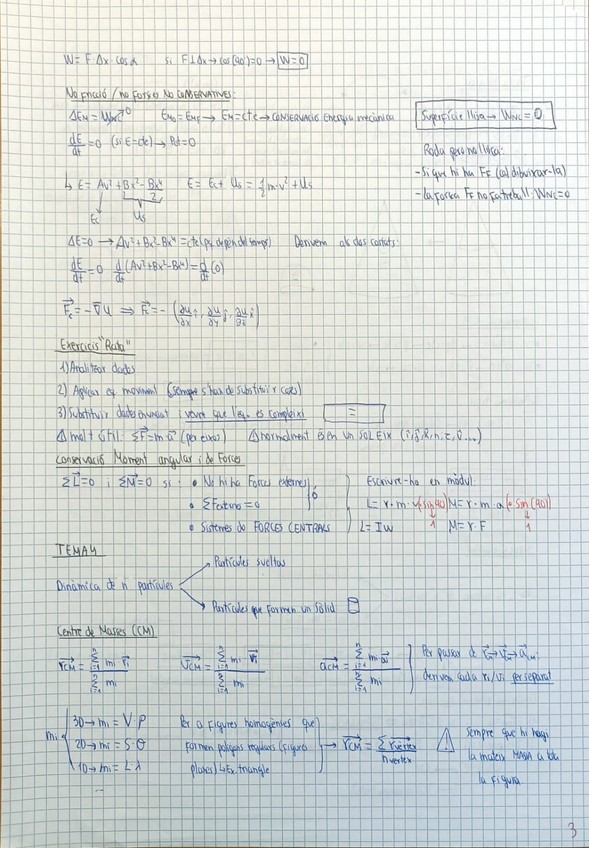 apunts molt resumits, clars i concisos del tema 4 dinàmica n partícules fisica 1, etseib. varis colors i estils per fer-los més visuals.