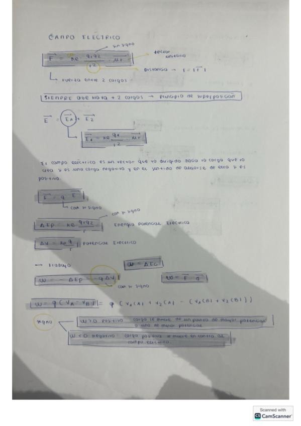 Formulario con todas las formulas de la primera parte de Fisica 2