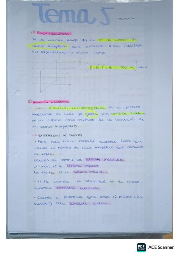 Apuntes de inducción magnética 2º de Bachillerato: Incluye flujo de campo magnético, inducción de una fuerza electromotriz, dispositivos de corriente alterna, autoinducción e inducción mutua. Suerte!!