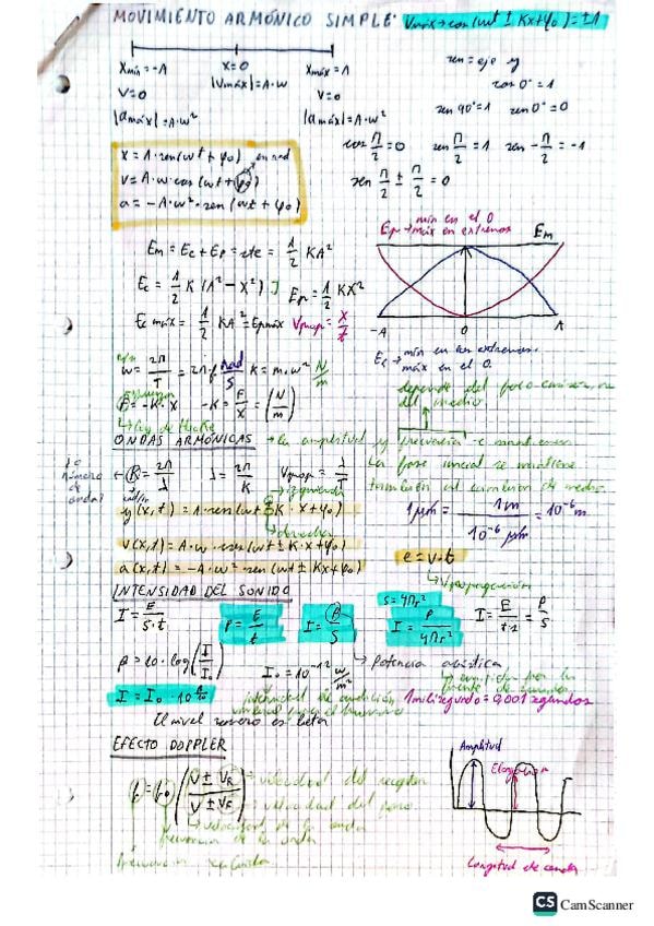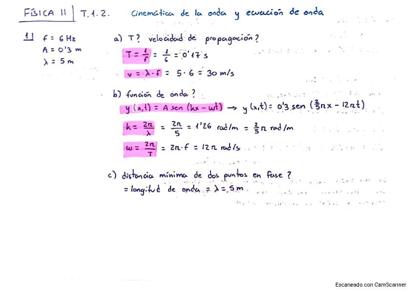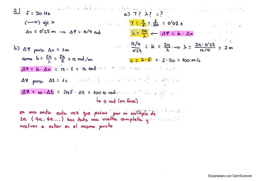 Todos los ejercicios resueltos de ondas del profesor Andrés con fórmulas subrayadas (en amarillo las que ya salieron en ejercicios anteriores)