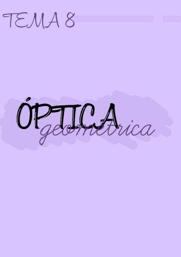 Apuntes de óptica geométrica de 2º de bachillerato: Incluye las leyes de la óptica geométrica, formación de imágenes mediante los diferentes sistemas ópticos, la visión humana, instrumentos ópticos y dioptrios planos. Suerte!!