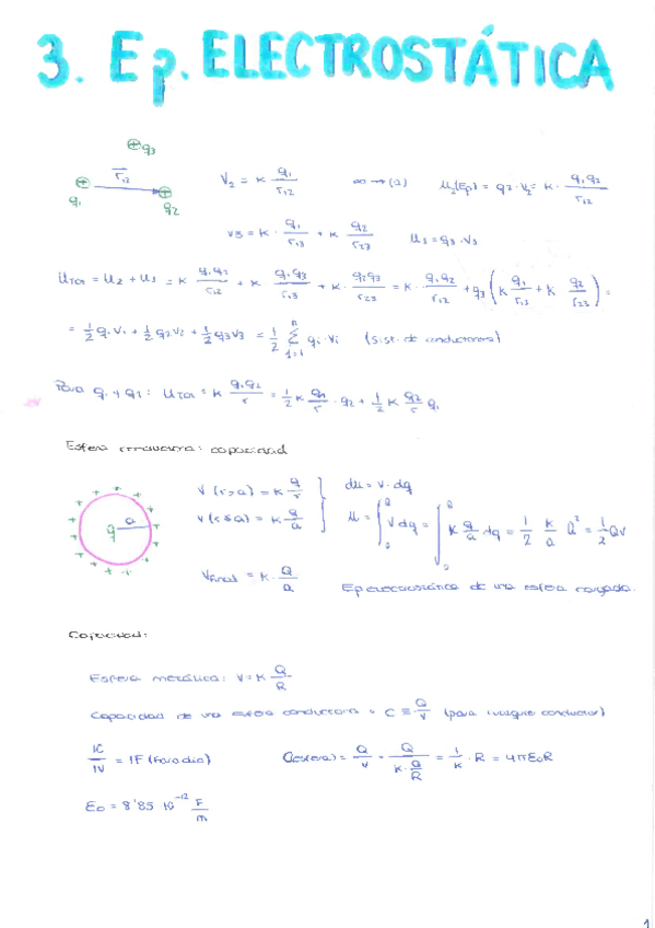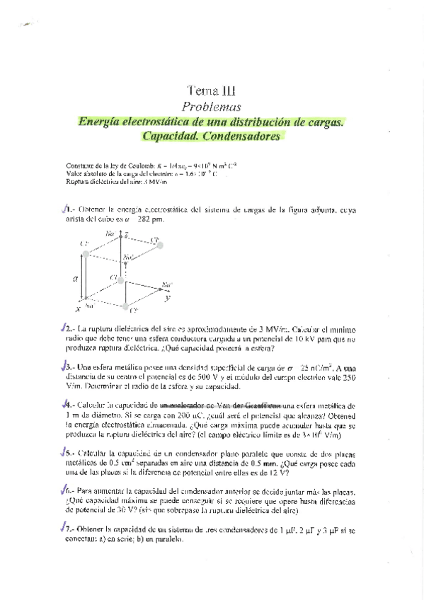 Ejercicios energía electrostática, capacidad y condensadores