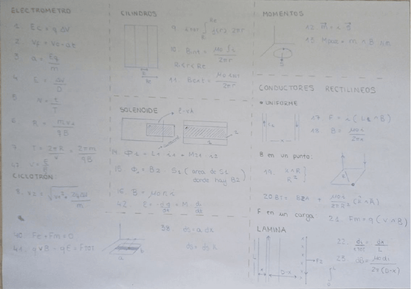 Formulario campo magnético (cilindros, solenoides, laminas,ondas))