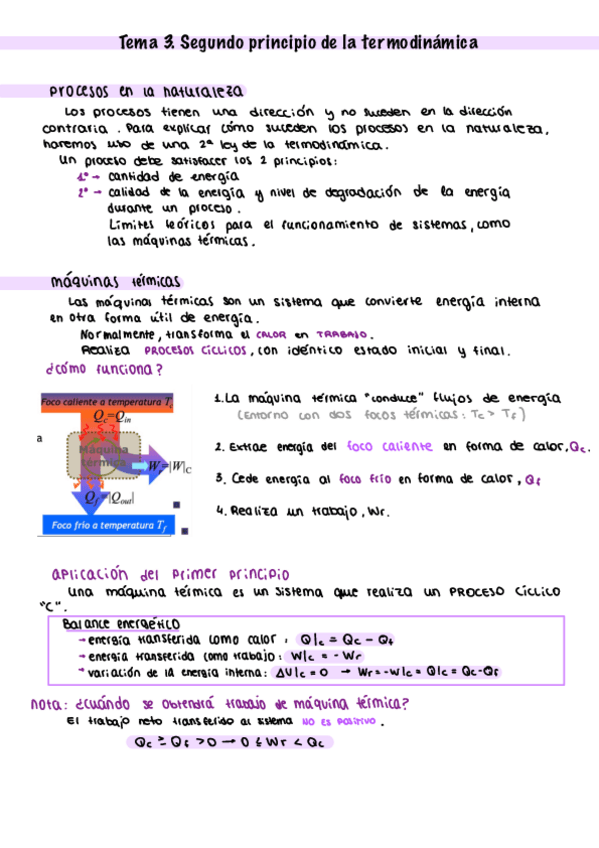 Apuntes tema 3 Segundo principio (incluidos los ejercicios hechos en clase)