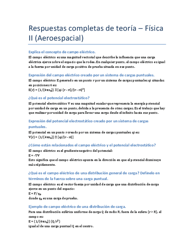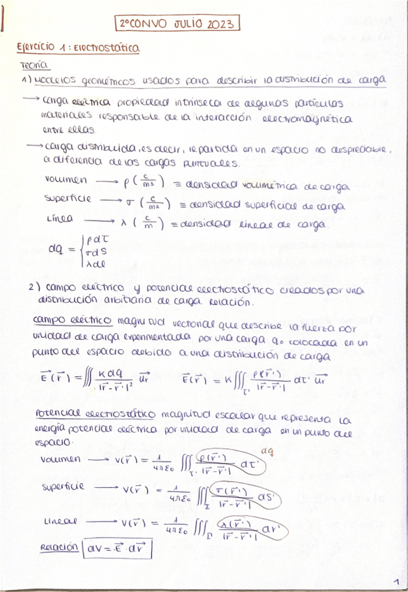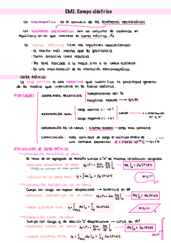 Apuntes tema 1 Campo eléctrico (incluidos los ejercicios hechos en clase)