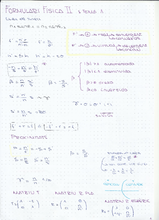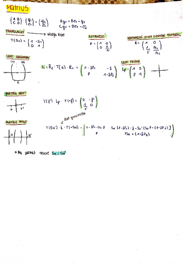 He publicado nuevos apuntes de 1º Física Ii. Óptica Geométrica.: Matrius-i-formules.pdf