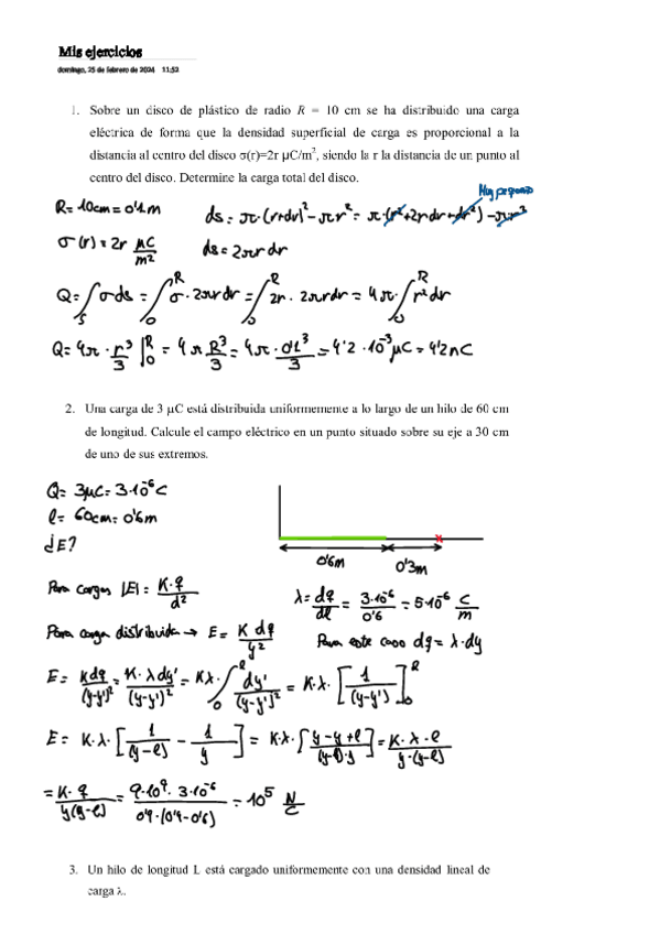 He publicado nuevos ejercicios de 1º Física II: Tema 3.- Distribuciones continuas de carga