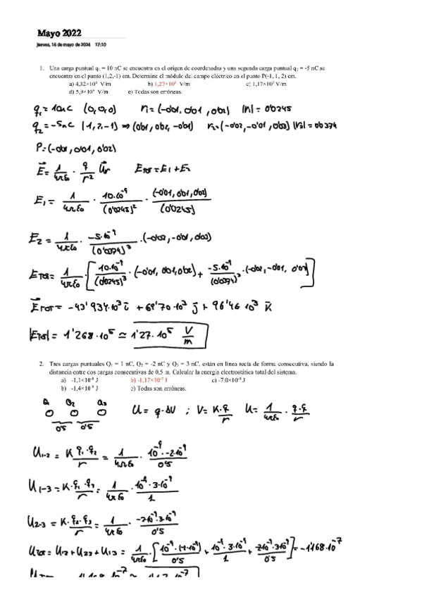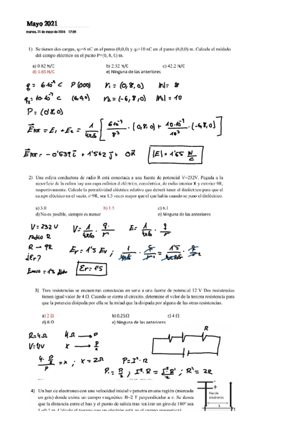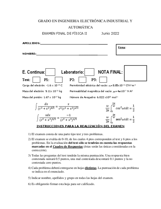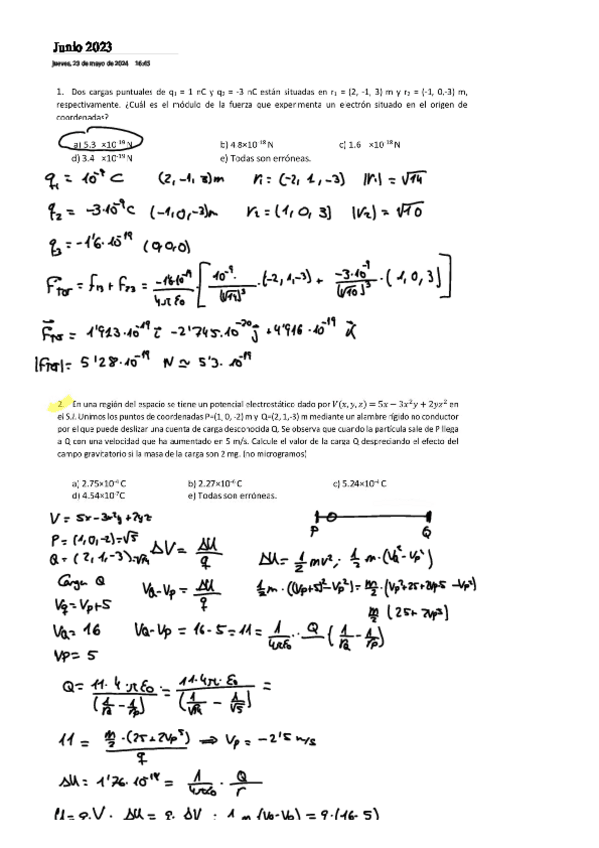 Recopilatorio de todos los examenes de Fisica II con solucion de los ejercicios tipo test