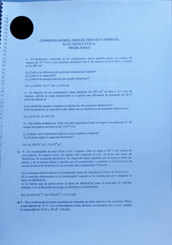 He publicado nuevos ejercicios de 1º Física II: Ejercicio-Condensador.pdf