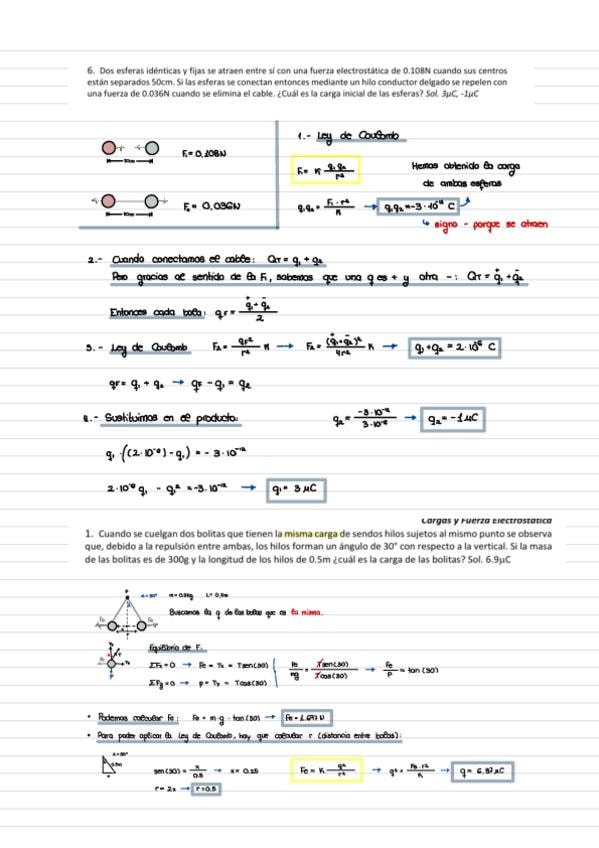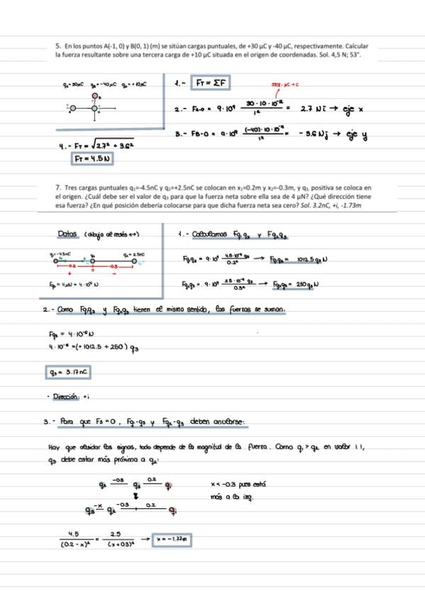 Ejercicios del 1 al 10 de Tema 1 de Fisica II relacionados con la Ley de coulomb y su aplicación