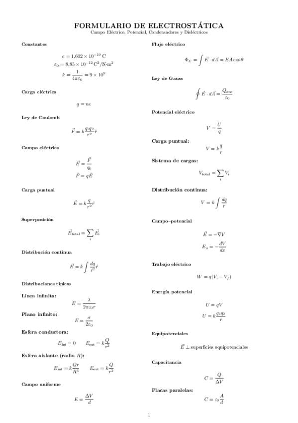 Formulario completo física II