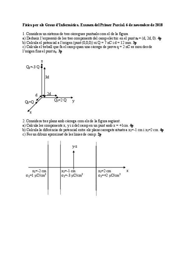 Exàmen 1r parcial de física I d'Engenyeria informàtica. Mateix contingut física II.