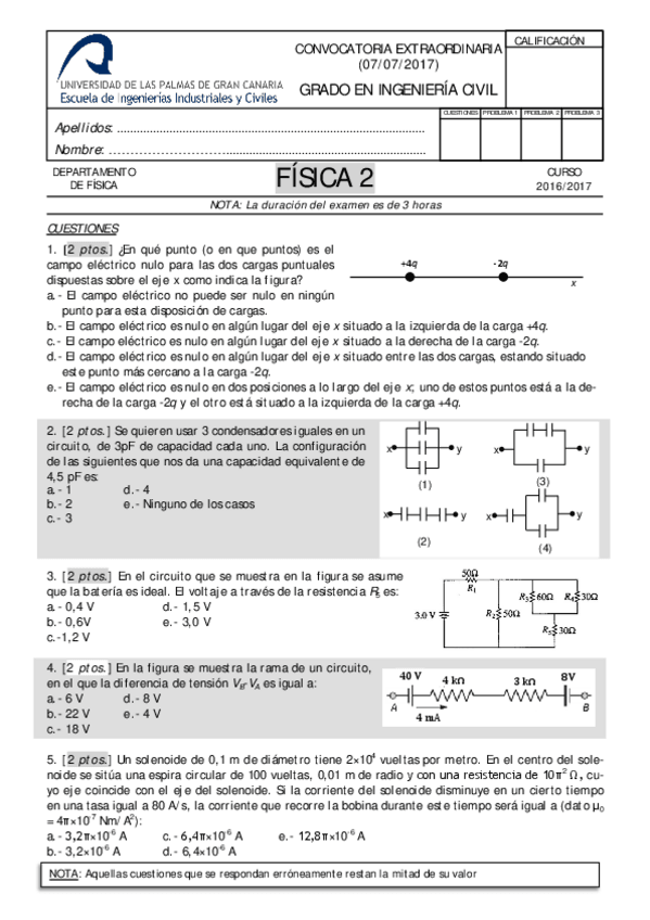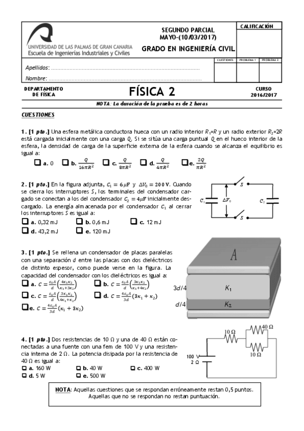 He publicado nuevos examenes de 1º Física II: Exámenes 2016 - 2017