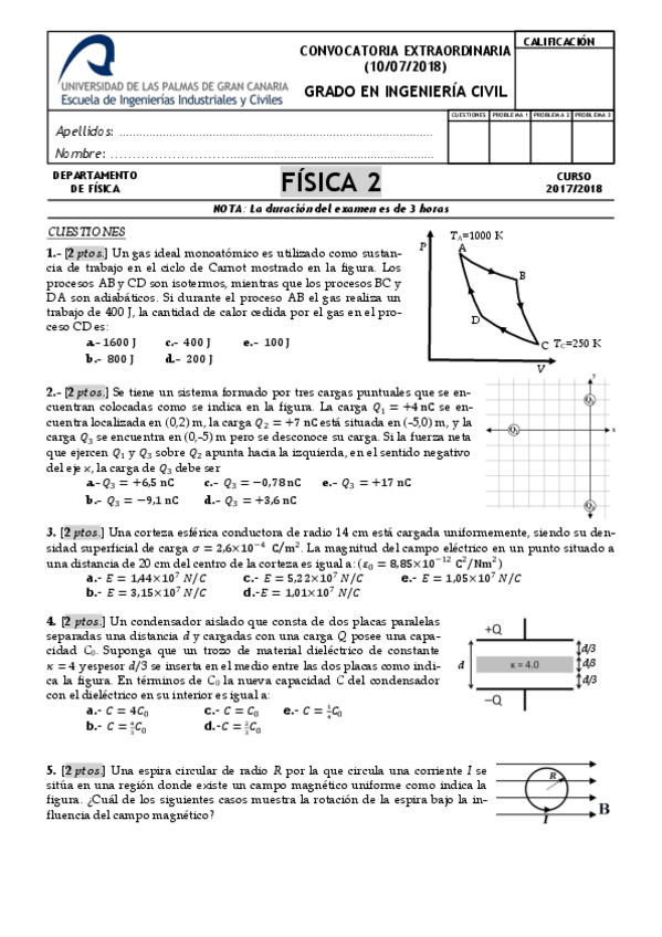 He publicado nuevos examenes de 1º Física II: Exámenes 2017 - 2018