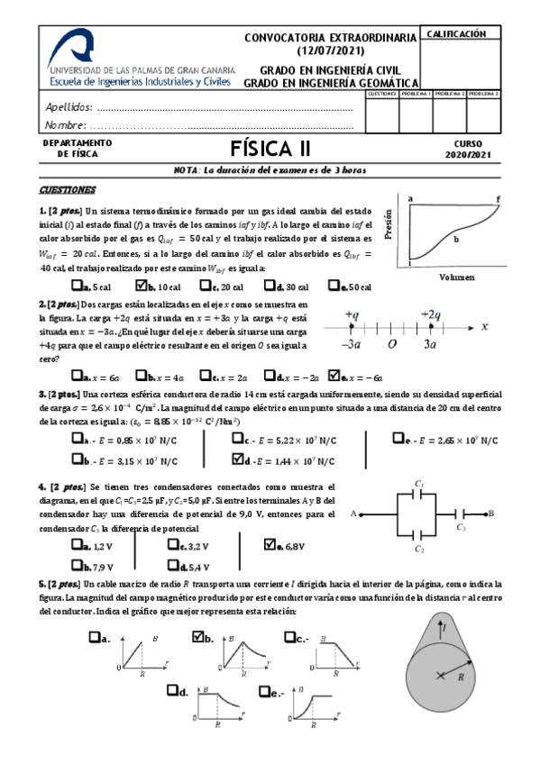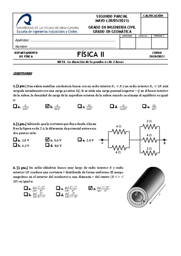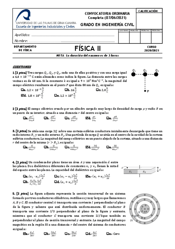 He publicado nuevos examenes de 1º Física II: Exámenes 2020 - 2021