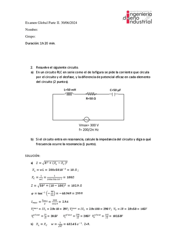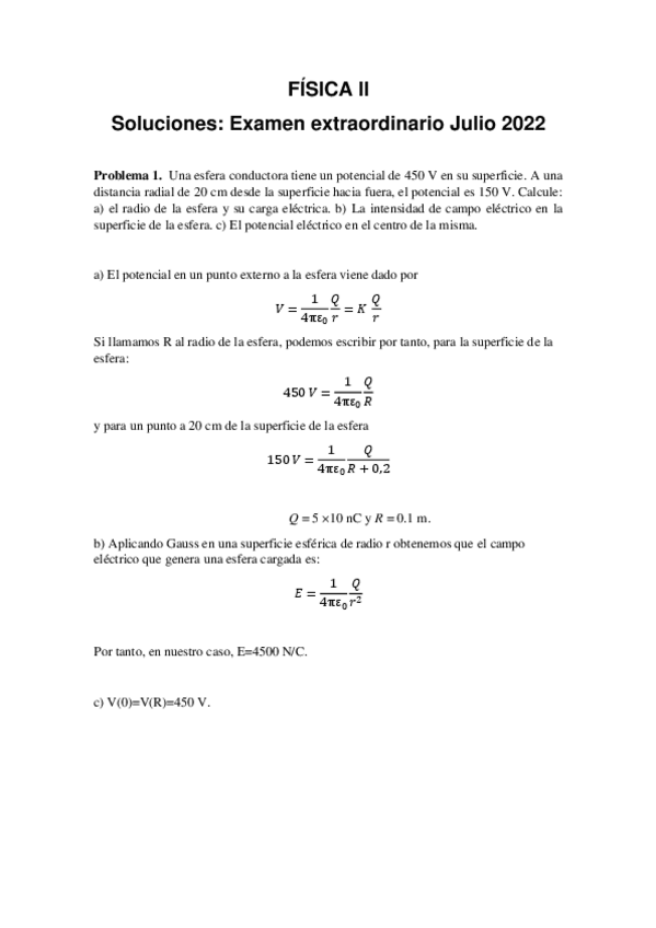 Exámen Junio 2023 Física II resuelto