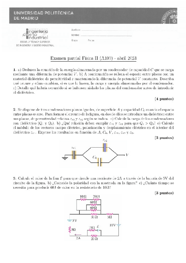 He publicado nuevos examenes de 1º Física II: Fisica-II-Examen-Parcial.pdf