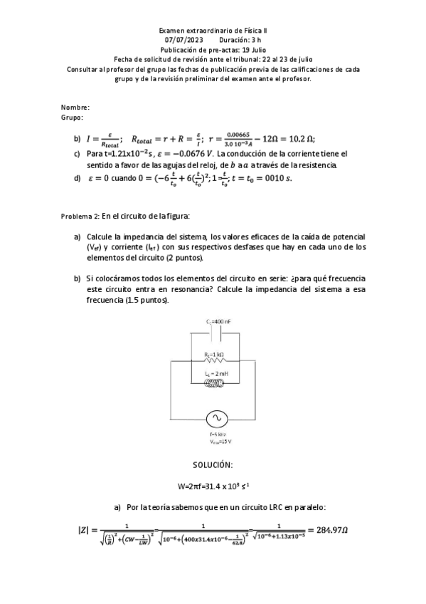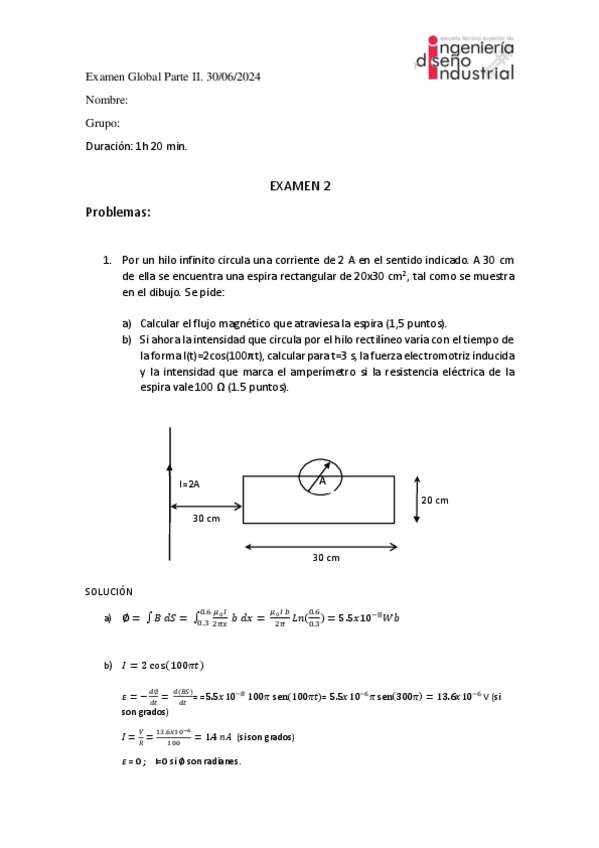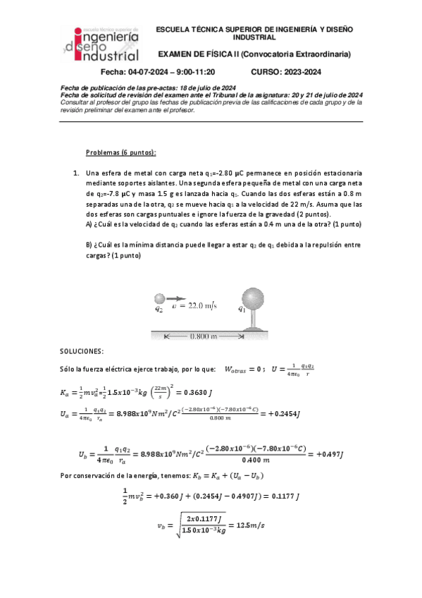Exámen Junio 2023 Física II resuelto