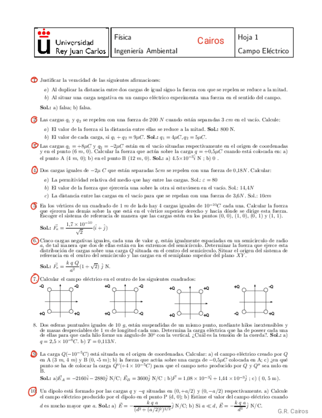 Ejercicios resueltos de la HOJA 1-Campos Eléctrico del curso 2024-2025.