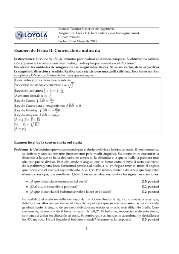 He publicado nuevos examenes de 1º Física II: Examen_ordinario_2014_2015 Resuelto.pdf
