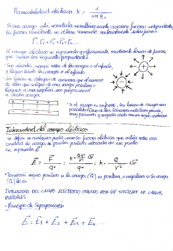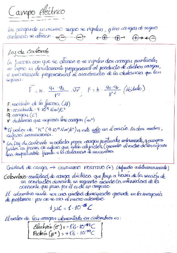 Apuntes para examen con fórmulas y teoría de CAMPO ELÉCTRICO.