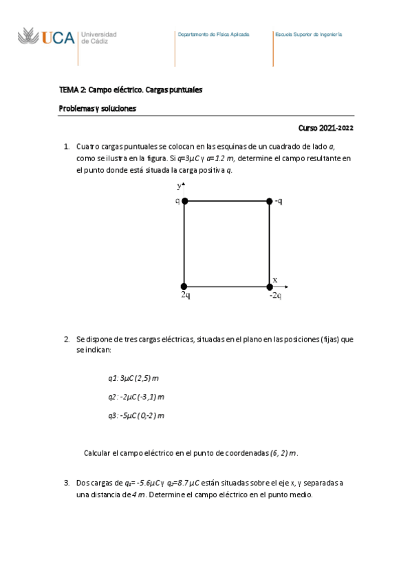 Temas 1, 2 y 3 de Fisica II con ejemplos. Apuntes de Marisa
