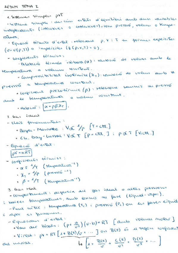 Resumen de los apuntes del Tema 2 de Termodinamica