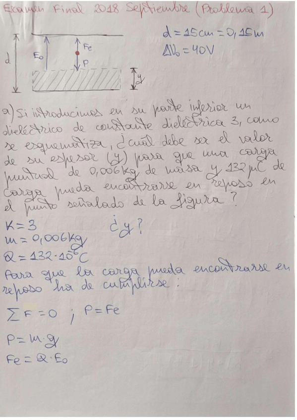 Problema número 1 resuelto del examen final de septiembre 2018