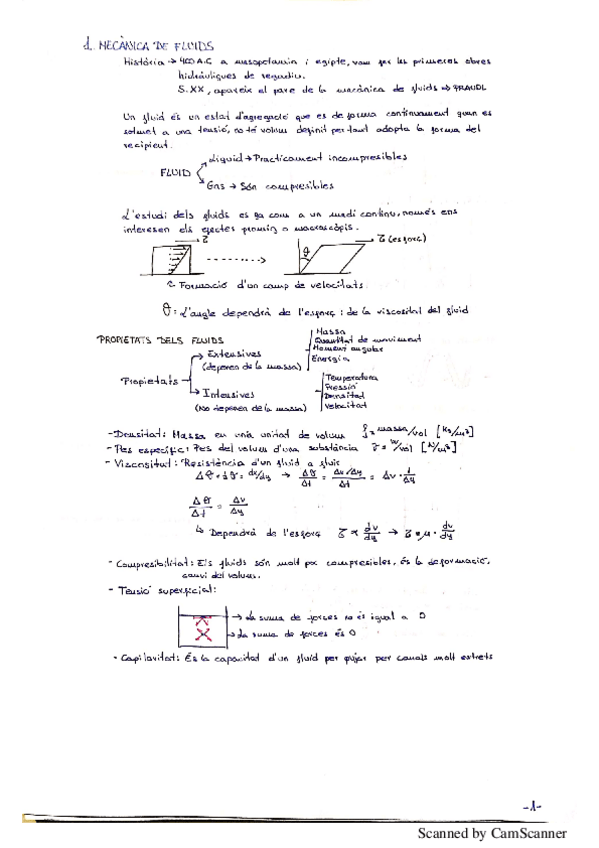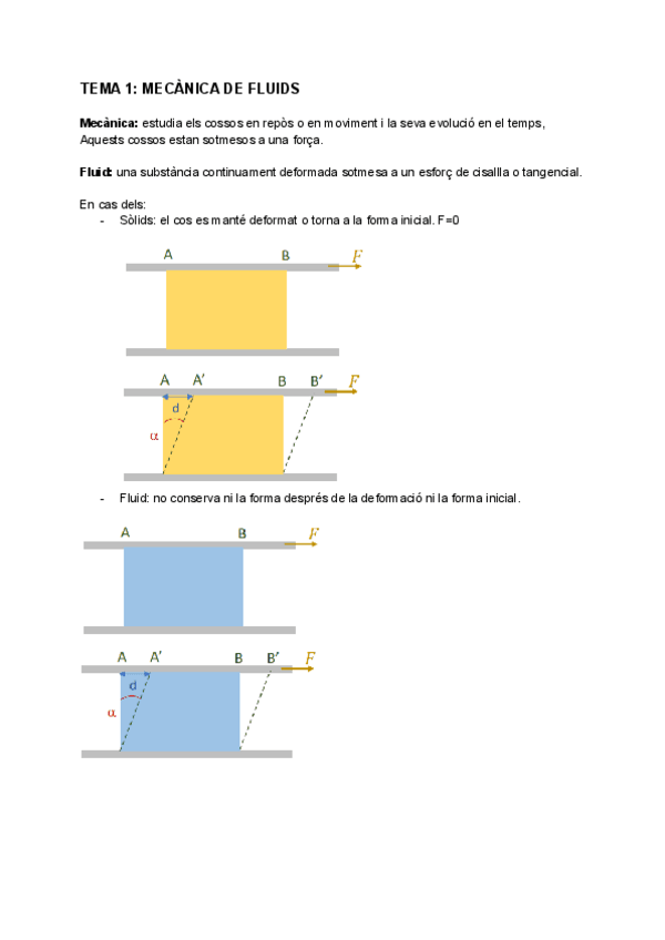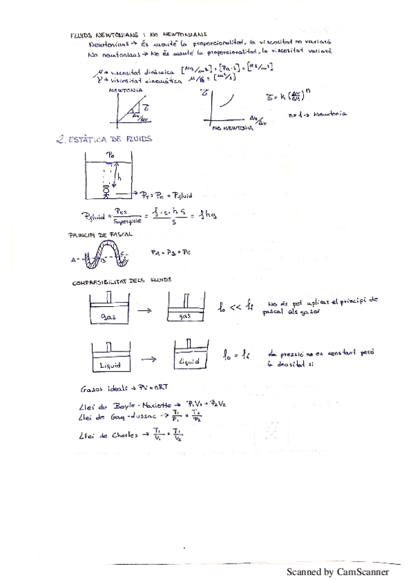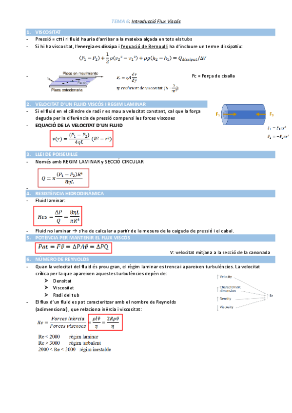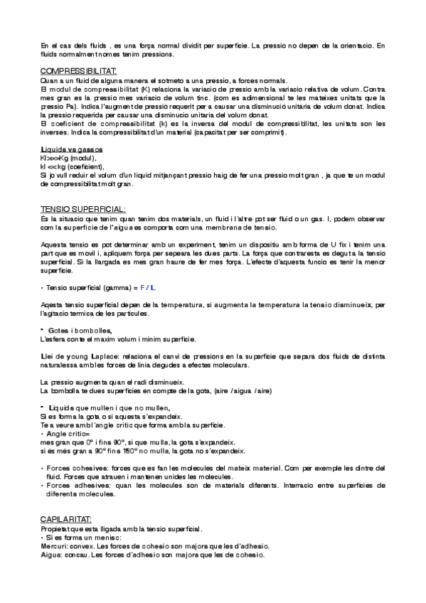 Apunts resumits de Física II (Dinàmica de Fluids, Estàtica de Fluids i Introducció Flux Viscós)