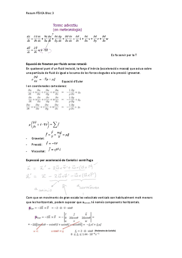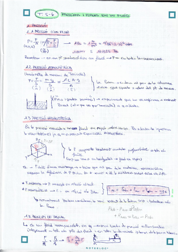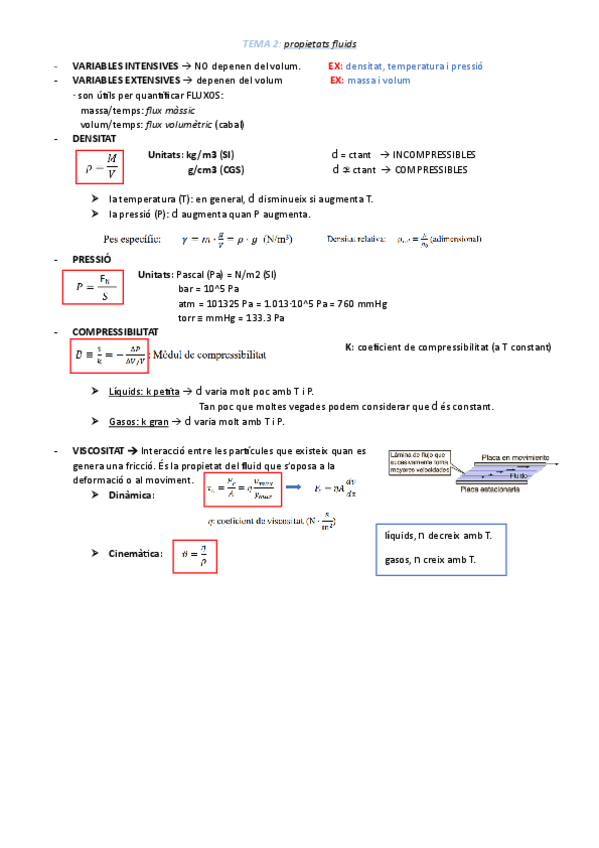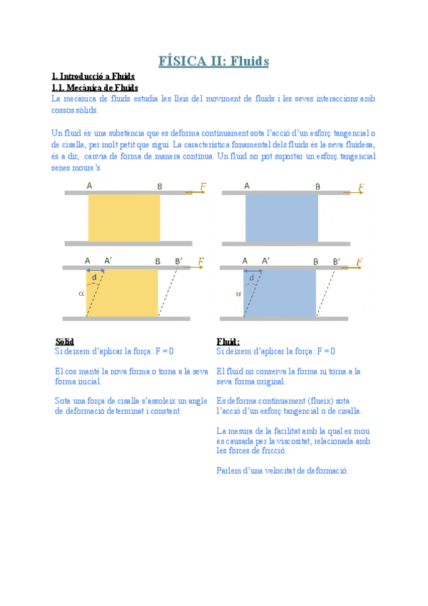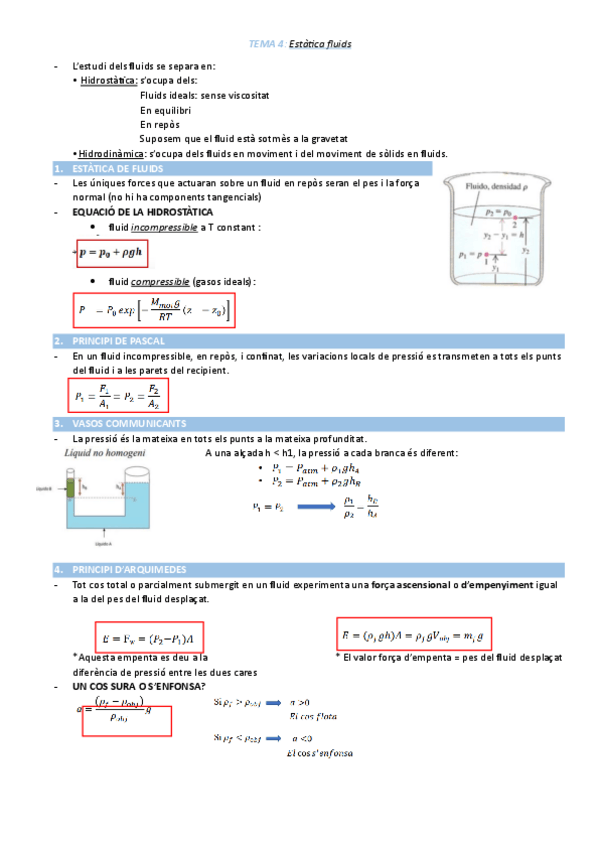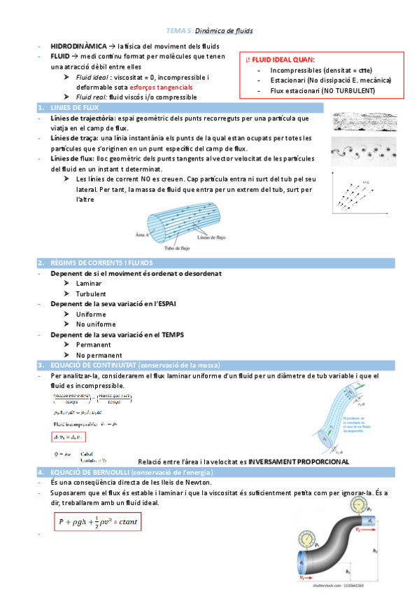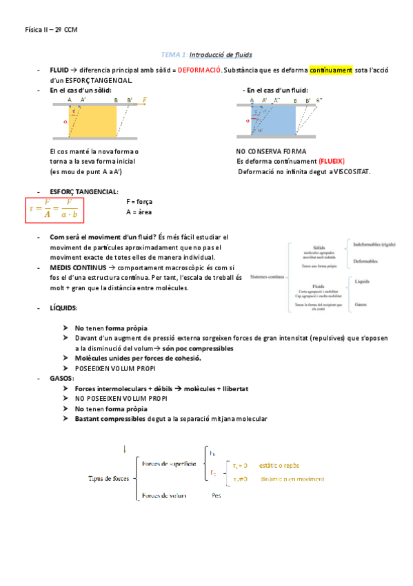 Apunts resumits de Física II (Dinàmica de Fluids, Estàtica de Fluids i Introducció Flux Viscós)
