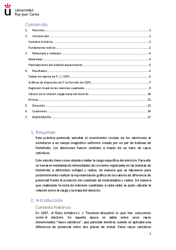 He publicado nuevos practicas de 1º Física II: Memoria del cálculo de la carga específica del electrón.pdf