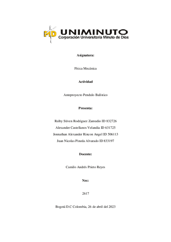 He publicado nuevos trabajos de 1º Física Mecánica: Anteproyecto-Pendulo-Balistico.pdf