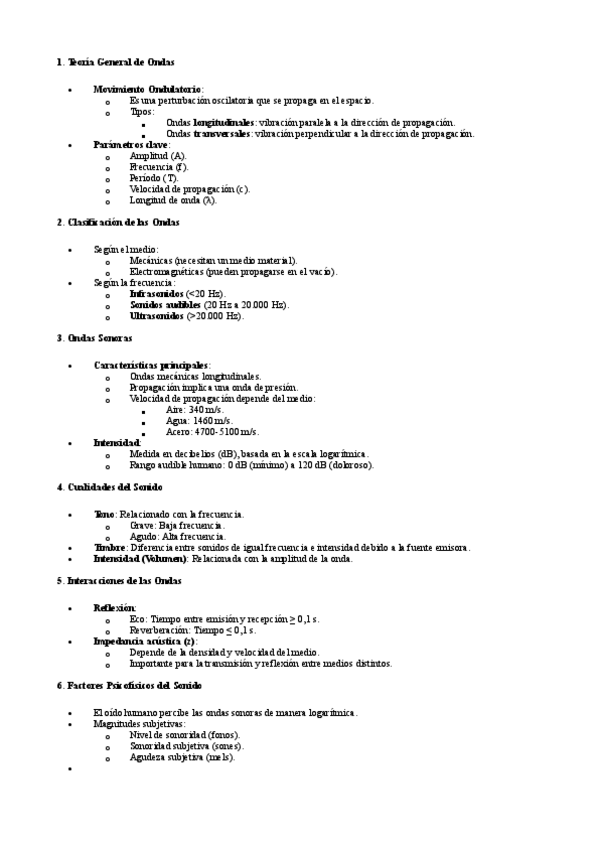 Cuestionario Ondas Sonoras/ Física de la Recepción Auditiva/ Ultrasonidos