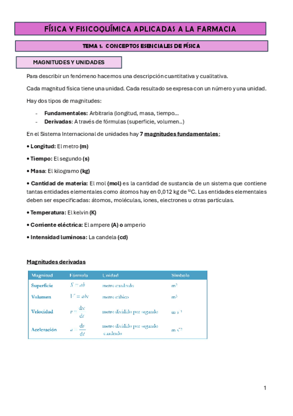 He publicado nuevos apuntes de 1º Física y Fisicoquímica Aplicadas a la Farmacia: Física temario completo resumen.pdf