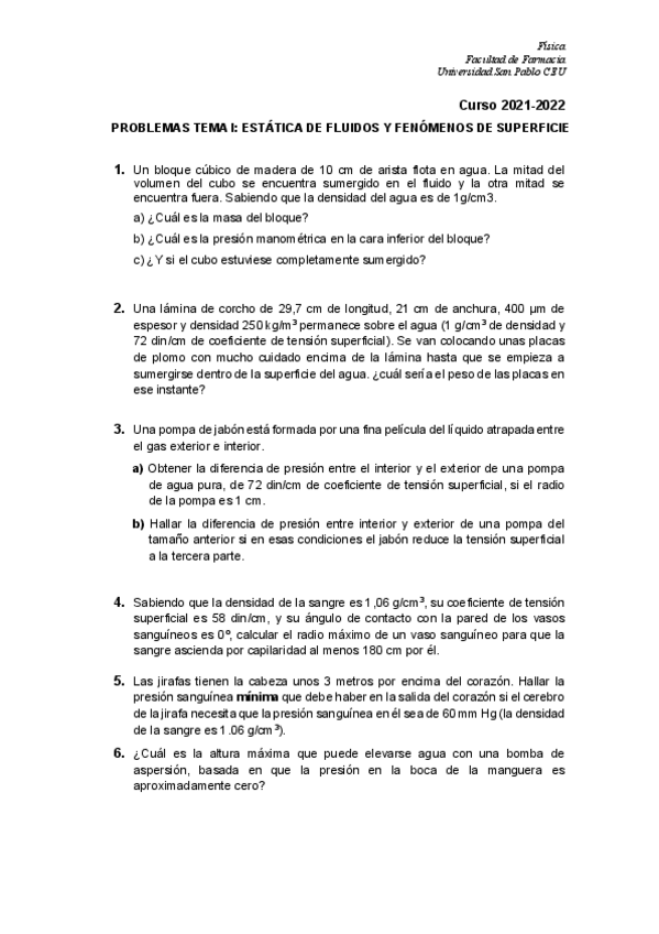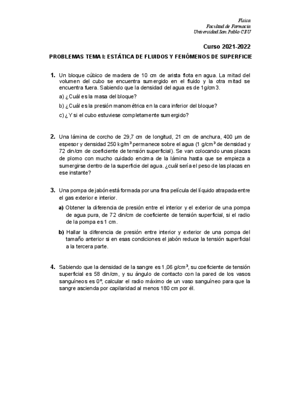 He publicado nuevos ejercicios de 1º Física y Fisicoquímica I: Ejercicios-Estatica-De-Fluidos-Tema-1.pdf