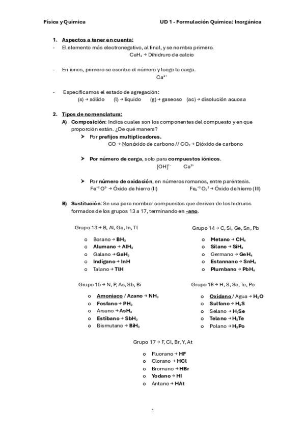 Teoría para aprender a formular dentro de la química inorgánica, enfocada en el nivel de 1º de bachillerato.