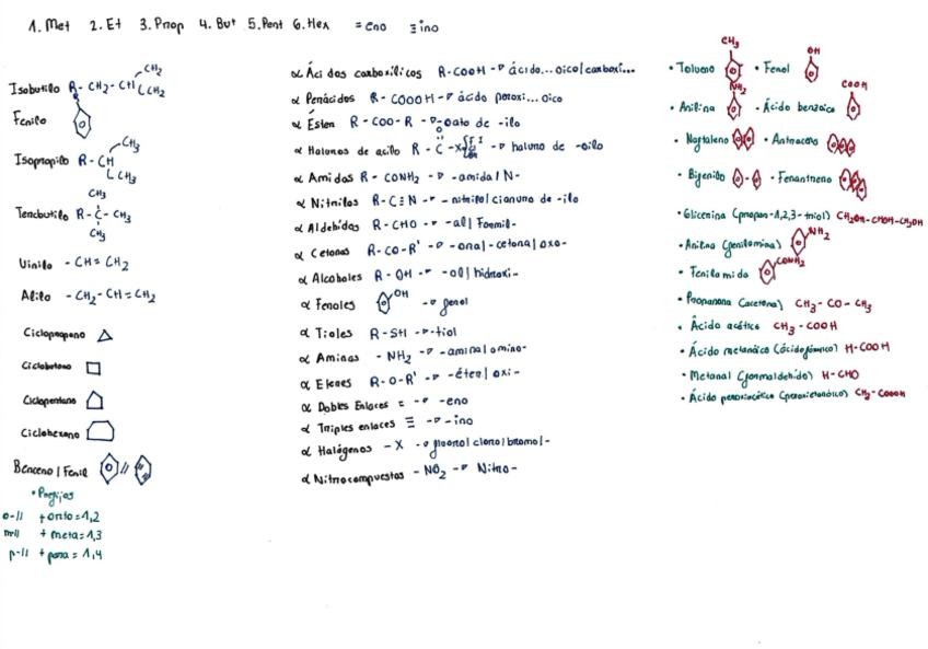 Química. Esquema sobre formulación orgánica. 1 Bachillerato.