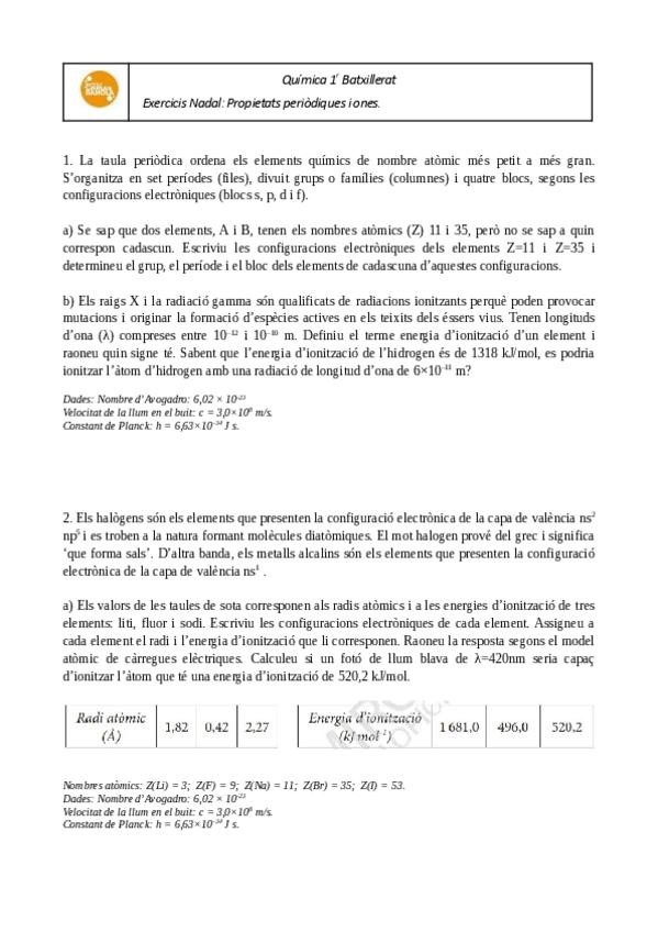 CreadoresExercicis selectivitat de l'estructura de l'àtom i taula periódica adaptats Química 1r de Bat