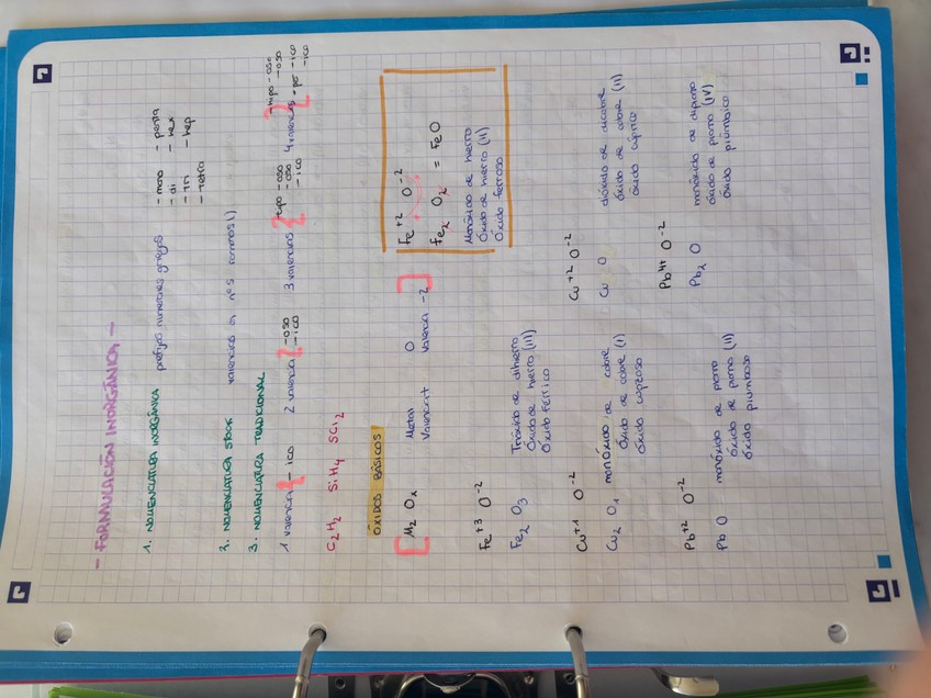 Tabla de apuntes resumidos de formulación inorgánica de gran utilidad.