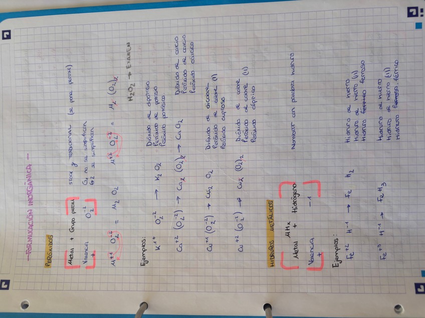 Resumen con ejercicios corregidos de formulación inorgánica de 1 de bachillerato.